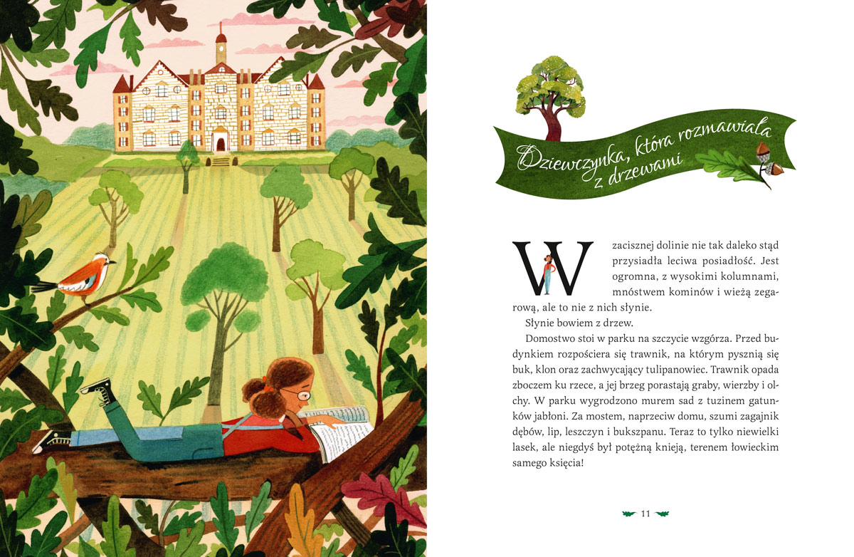 Książka Natashy Farrant to baśniowa powieść szkatułkowa, zilustrowana przez Lydie Corry. Autorka prowadzi młodych czytelników przez siedem opowieści, w których za przewodników służy siedem różnych drzew. Każde z nich ma do przekazania Oliwii własną, poruszającą historię oraz kluczową lekcję. Dziewczynka, która rozmawiała z drzewami oczarowuje i przypomina, jak cennym skarbem jest otaczająca nas przyroda oraz jak ważne jest dbanie o naturę. Czy wzbogaconej o tę wiedzę bohaterce uda się przekonać ojca do zmiany decyzji? Przekonajcie się sami!