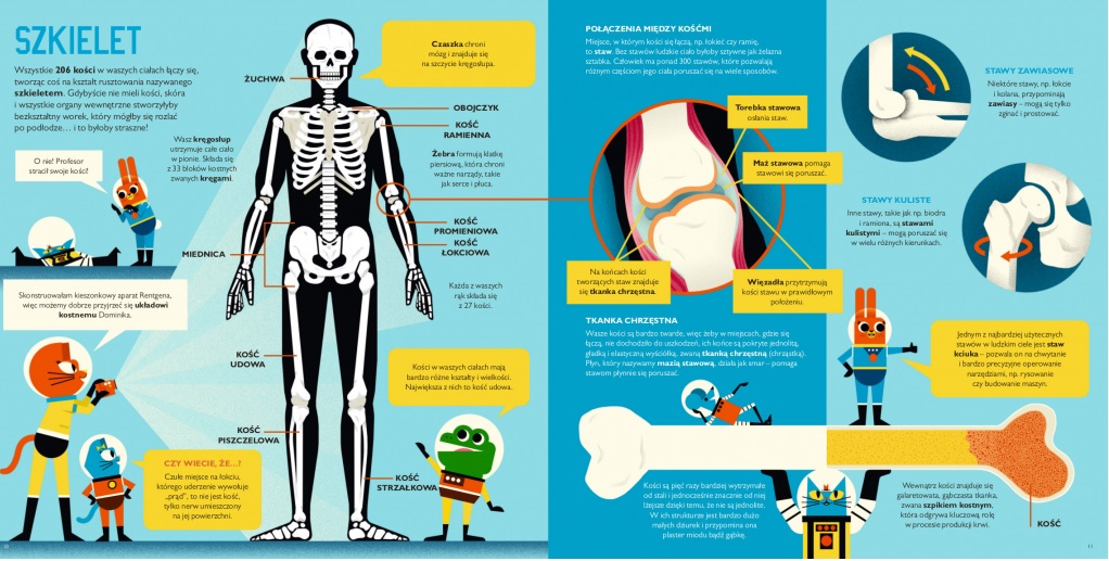 Czy nasze uszy muszą mieć taki skomplikowany kształt? Dlaczego kichamy? I w ogóle – po co nam skóra? Ludzkie ciało jest jednym z najbardziej złożonych tworów we Wszechświecie! Dołącz do profesora Astrokota i jego drużyny, którzy postanowili przyjrzeć się bliżej temu cudowi natury. Modelem naukowym zgodził się zostać sam autor – Dominic Walliman! Poczynając od głowy, a kończąc na stopach – każdy zakamarek zostanie wnikliwie zbadany w tej fascynującej odysei po ludzkim ciele! (Nota wydawcy).