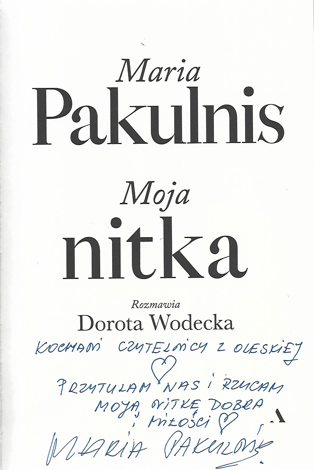 Moja nitka / Maria Pakulnis ; rozmawia Dorota Wodecka. - Warszawa : Agora, 2023. - 394, [6] stron : faksymilia, fotografie, portrety ; 24 cm.