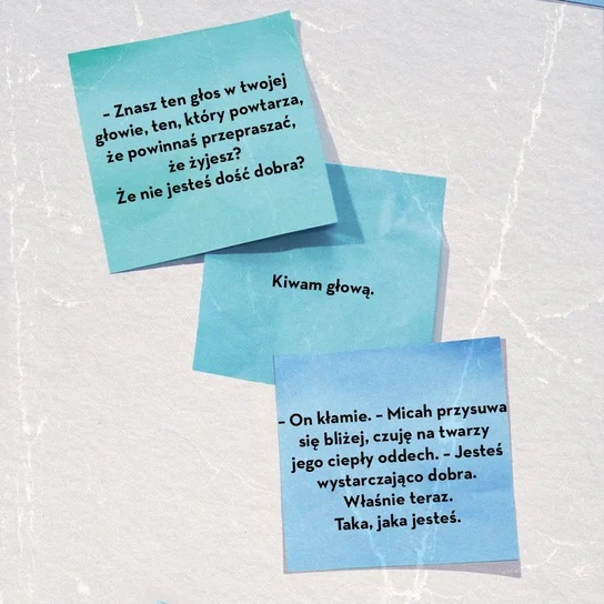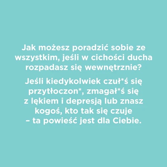 Treści wrażliwe: próby samobójcze, problemy ze zdrowiem psychicznym, depresja, trauma, stany lękowe, ataki paniki, szykanowanie (przez rówieśników), śmierć bliskiej osoby, samookaleczanie. (Nota wydawcy).