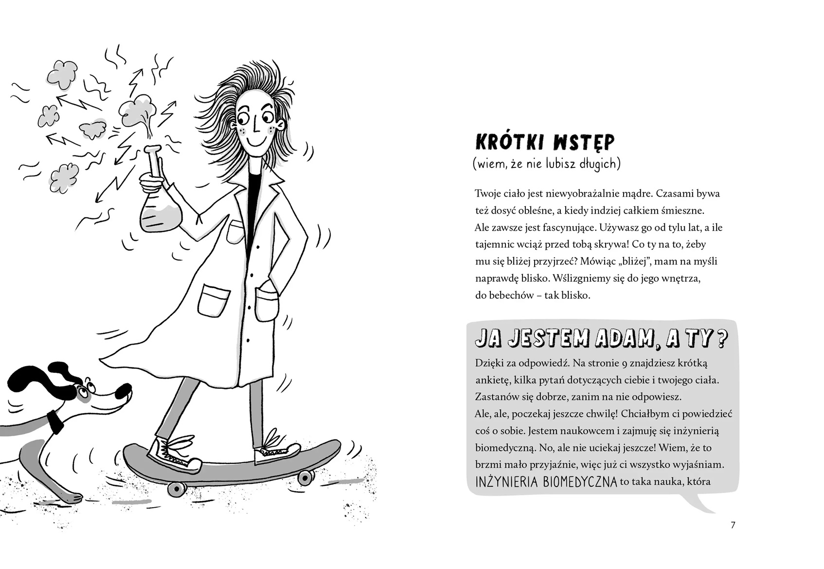 Twoje ciało to zagadkowa maszyna. Coś w nim stuka, huczy, kłuje. Czasem nie chce robić tego, co mu się każe (znasz to?). Dziwnie pachnie. Ma włosy w niektórych miejscach, a w innych jest zupełnie łyse. Chodź, zajrzymy do wnętrza twojego organizmu. Uroczyście przysięgam: nie cofniemy się przed niczym, żadna (nawet najbardziej obleśna!) tajemnica ludzkiego ciała nas nie powstrzyma. Wślizgniemy się z lupą w sam środek twoich bebechów. Dowiesz się: • dlaczego twój oddech pachnie czasami jak oddech zombiaka, • kiedy twój mózg przypomina rollercoaster, • jak to się dzieje, że nawet najpyszniejsze lody zamieniają się w… no wiesz, w co, • dlaczego męczysz się nad nauką, ale nie wtedy, kiedy oglądasz seriale. Odkryj wybebeszone tajemnice ludzkiego ciała! (Z okładki).