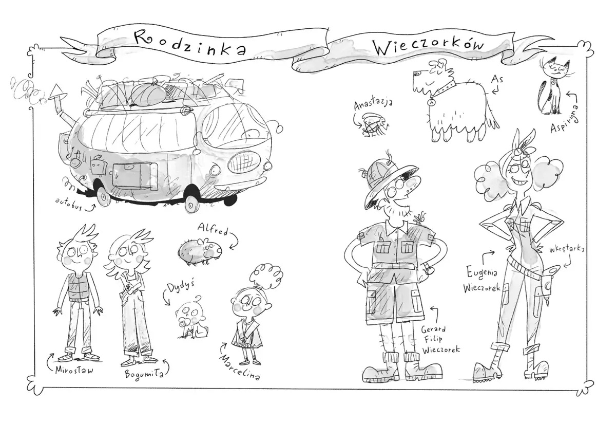 Bohaterem jest tu pewna rodzina i jej sporych rozmiarów zwierzyniec. Nie wiodą nudnego życia w ciasnym domku, gdzieś w Polsce. Nic z tych rzeczy. Mieszkają w swoim autobusiku, który zaspokaja ich wszystkie potrzeby i może dotrzeć nawet w najdalszy zakątek naszego globu. Spytacie pewnie jak to jest możliwe? Matka Eugenia Wieczorek jest szaloną wynalazczynią, (...) ma równie uzdolnione technicznie dzieci. Jej mąż natomiast to entomolog, który stroni jedynie od karaluchów. Pewna sytuacja z nadbagażem zmusza tą szaloną rodzinkę to podjęcia konkretnych kroków. Niestety okazuje się, że nie potrafią w sposób sensowny uporządkować wszystkiego, co znajduje się w ich autobusie. Wówczas Eugenia decyduje się na zmniejszenie olbrzymich sprzętów swoim petytizatorem. Niestety dziwnym zbiegiem okoliczności pomniejsza przy tym swego męża Gerarda Filipa. Ten z kolei gubi się zwyczajnie w trawie. Rodzina wyrusza ojcu na ratunek, bo Eugenia zupełnie zapomniała, że jej urzędzie powiększające jest dopiero w fazie produkcji. Sytuacja jednak z minuty na minutę się komplikuje coraz bardziej… Ale proponuję sięgnąć po „Tatę w tarapatach”, by poznać finał tej historii. Alboooo jej niesamowity początek!!! Wyśmienita zabawa gwarantowana. Jest to bardzo brawurowa lektura. Dla mnie extra!!! Czekam na część kolejną i gorąco polecam!!!
