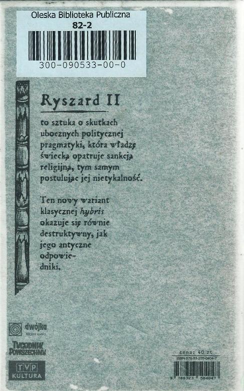 Tytuł oryginału: The life and death of Richard the Second (First Folio, 1623).