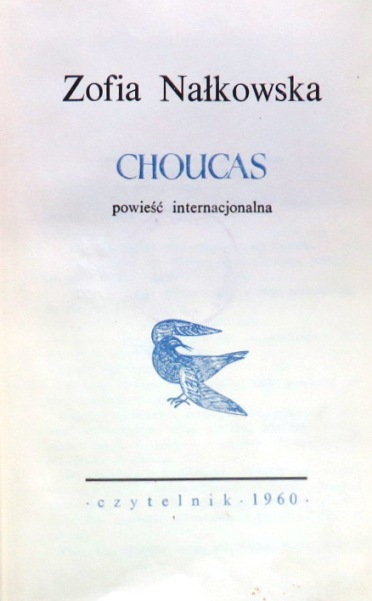 Choucas : powieść internacjonalna / Zofia Nałkowska. - Warszawa : Czytelnik, 1960. - 146, [2] s. ; 20 cm.