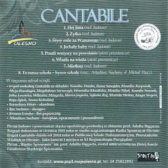 Zawiera: Pieśni ludowe i powstańcze Śląska Opolskie pochodzą ze zbiorów prof. Adolfa Dygacza: Hej Jana (mel ludowa) ; Żytko (mel ludowa) ; Śtyry mile Za Warsawom (mel ludowa) ; Jechały baby (mel ludowa) ; Poszli wszyscy na powstanie (pieśn powstańcza) ; Wlazła na wieża (pieśn powstańcza) ; Mietlorz (mel ludowa) ; To nasza szkoła - hymn szkoły / muz. Arkadiusz Suchara, sł. Michał Tkacz.