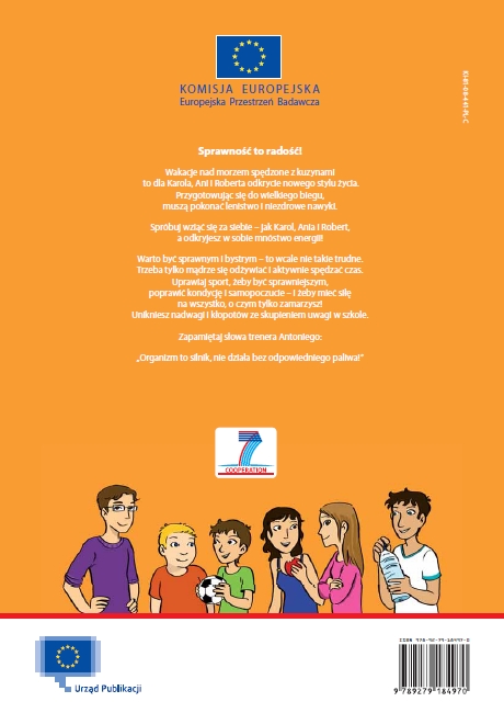 Wakacje nad morzem spędzone z kuzynami to dla Karola, Ani i Roberta odkrycie nowego stylu życia. Przygotowując się do wielkiego biegu, muszą pokonać lenistwo i niezdrowe nawyki. Spróbuj wziąć się za siebie - jak Karol, Ania i Robert, a odkryjesz w sobie mnóstwo energii! Warto być sprawnym i bystrym - to wcale nie takie trudne.Trzeba tylko mądrze się odżywiać i aktywnie spędzać czas. Uprawiaj sport, żeby być sprawniejszym, poprawić kondycję i samopoczucie - i żeby mieć siłę na wszystko, o czym tylko zamarzysz! Unikniesz nadwagi i kłopotów ze skupieniem uwagi w szkole. (Z okł.).