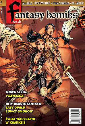 Przysięga, część 1. Scenariusz do tego hitu napisał Francuz Fabrice David, który stał się sławny dzięki komiksom science fiction (Live War Heroes), kryminalnym (Zodiac Killer), historycznym (m.in. Carthage, Les Voies du Seigneur; Bravesland), ale przede wszystkim dzięki serii fantasy - Przysiędze. Rysunki są dziełem mistrza stylu realistycznego, Erica Bourgiera, który wcześniej pracował z Davidem nad albumem Live War Heroes.Przysięga to emocjonująca opowieść przygodowo-polityczna o zmaganiach między władcami oraz o walkach z potworami. Kilkadziesiąt lat temu wszystkie księstwa północy zostały zjednoczone przez pochodzącego od olbrzymów króla Garantiela. Po latach pokoju pewien ambitny książę postanawia rozpętać wojnę domową, by przejąć rządy w państwie. Aby tego dokonać, sprowadza z krańców kontynentu legendarnych wojowników, Drekkarów. Wraz z nimi przybywają bestie, których nie widziano od tysiąca lat - smoki. Rozpoczynają się krwawe walki, mające zdecydować o przyszłości królestwa.