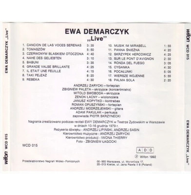 Live / Ewa Demarczyk. - 1 płyta CD Audio ; 12 cm.