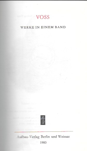 Werke in einem Band / Voss ; [ausgewählt und eingeleitet von Hedwig Voegt]. - 4. Auflage. - Berlin ; Weimar : Aufbau-Verlag, 1982. - XXXVIII, 433 , [2] strony : portret ; 19 cm