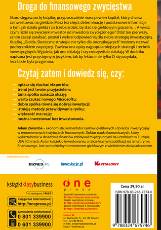 Książka zawiera opisy najpopularniejszych strategii i technik inwestycyjnych. Wyjaśnia, jak one działają i czy rzeczywiście działają.