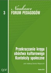 Opracowanie pod redakcją Danuty Wajsprych można odczytać na wiele sposobów. Znajdą w niej coś dla siebie nauczyciel, przedstawiciel samorządu terytorialnego. Może ono także wywołać zadumę i autorefleksję wśród młodzieży, w tym również młodzieży studenckiej, wśród nauczycieli akademickich, zwłaszcza kształcących pedagogów. Dobrze byłoby, gdyby przeczytali ją urzędnicy administracji, aby wsparcie finansowe kierowali do najuboższych i zaniedbanych kulturowo. W opracowanie i jego treść wprowadza Danuta Wajsprych, wskazując na tło gospodarcze i społeczne, które spowodowało m.in. rozwarstwienie społeczne, ubóstwo, w tym także kulturowe. [...] Całość opracowania posiada dużą wartość poznawczą i pragmatyczną. Nie sposób sobie wyobrazić, aby poruszana problematyka nie mogła liczyć na zainteresowanie pedagogów, nauczycieli i pracowników naukowo-dydaktycznych. To opracowanie bowiem [...] wywołuje refleksję nad współczesną kulturą. Stanowi też ciągle aktualny przykład myślenia innowacyjnego nad stanem współczesnego ubóstwa i jego skutkami. W tej interesującej pozycji jest miejsce dla wszystkich, którym bliska jest problematyka minimalizacji ubóstwa kulturowego. Z recenzji prof. zw. dr hab. Eugenii Malewskiej. (Z okł.).