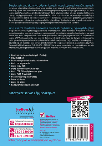 Kontrola dostępu do danych i funkcji ; SQL Injection ; Przechowywanie haseł użytkowników ; Ataki na logowanie ; Ataki typu XSS ; Dane z zewnętrznych źródeł ; Ataki CSRF i błędy transakcyjne ; Ataki Path Traversal ; Brak właściwej autoryzacji ; Dane u klienta ; Ataki na sesję ; Ładowanie plików na serwer.