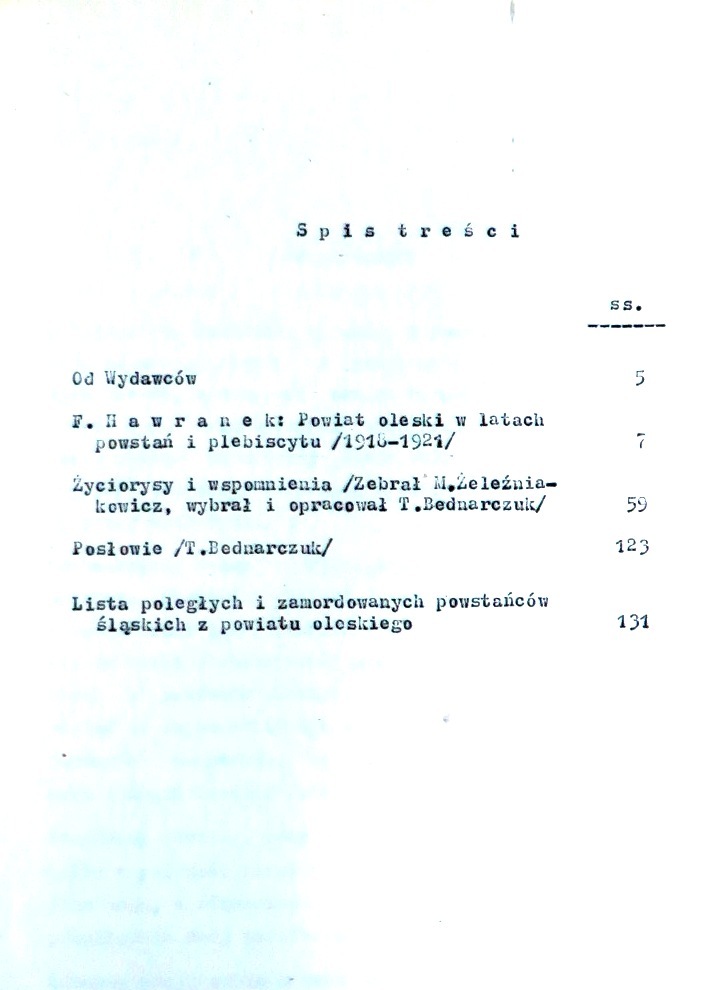 Zawiera też: Powiat oleski w latach powstań i plebiscytu (1918-1921) / Franciszek Hawranek.