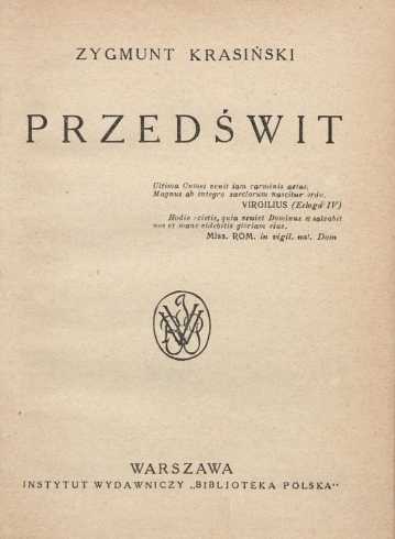 Przedświt / Zygmunt Krasiński ; [tekst oprac. według wyd. z 1851 r. Tadeusz Pini]. - Warszawa : Bibljoteka Polska, [1924] (Bydgoszcz : [Bibljoteka Polska]). - 59 s. ; 16 cm.