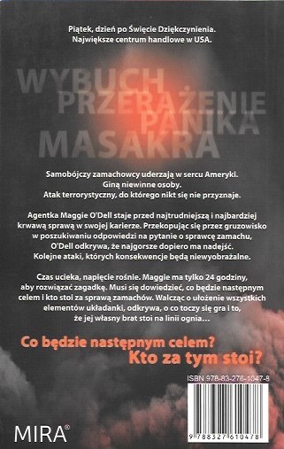 Piątek, dzień po Święcie Dziękczynienia. Największe amerykańskie centrum handlowe przeżywa prawdziwe oblężenie. Ludzi ogarnął szał zakupów. To dzień największych promocji, najkorzystniejszych okazji. Właśnie wtedy zamachowcy przeprowadzają samobójczy atak. Ginie wielu niewinnych ludzi. Agentka Maggie O'Dell staje przed najtrudniejszą sprawą w swojej karierze. Przekopując gruzowisko w poszukiwaniu odpowiedzi na pytanie o sprawcę zamachu, O'Dell odkrywa, że najgorsze dopiero ma nadejść.