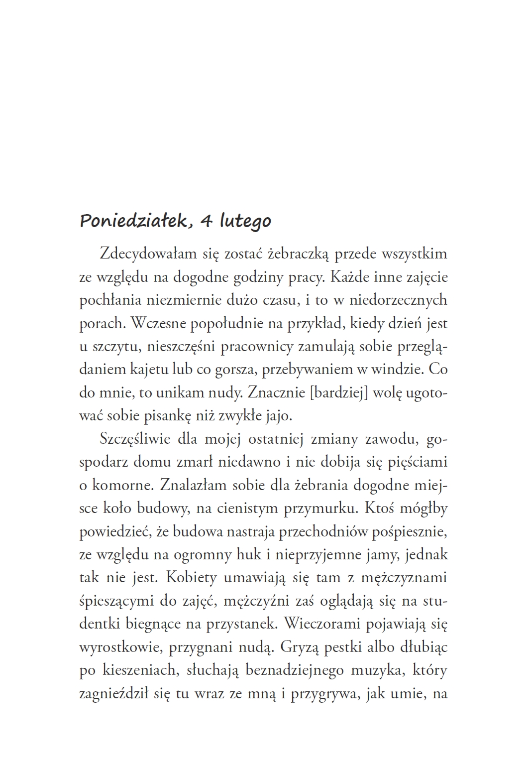 Dotąd niepublikowana, napisana na przełomie lat siedemdziesiątych i osiemdziesiątych powieść Agnieszki Osieckiej. Jak zawsze osobista, jak nigdy aktualna. Jakby celowo miała się ukazać właśnie dziś. Preludium do „Białej bluzki”, perpetuum mobile, dzięki któremu możemy udać się w fascynującą podróż śladami nieprzystosowanej do życia, antysystemowej, anarchicznej, a przede wszystkim żywiołowej (rzecznej, dorzecznej i niedorzecznej) bohaterki. (Z okł.).