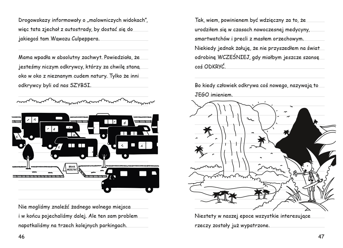 Wakacje w starym wozie kempingowym wujka Gary’ego? Brzmi jak przygoda! Rodzina Grega zamierza spędzić to lato w prawdziwej, najprawdziwszej głuszy. Tylko że w głuszy na ogół grasują jej niezbyt gościnni mieszkańcy – namolne niedźwiedzie, żarłoczne kleszcze i najgorsze z nich wszystkich – skunksy. Czy urlop na łonie natury, który był szczytem marzeń Heffleyów, okaże się zupełnym dnem? (Z okładki).