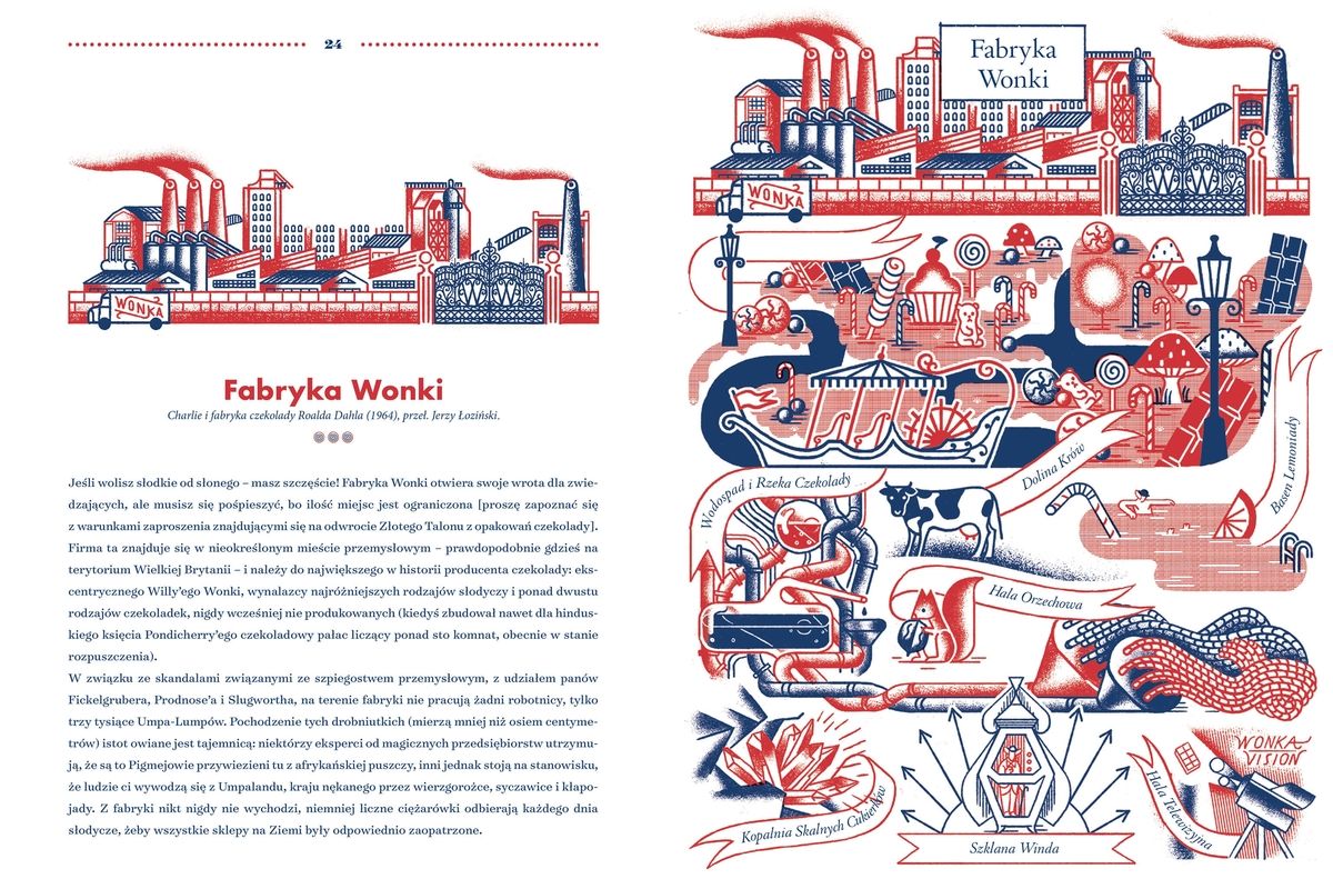 Znacie wszystkie tajne przejścia w Hogwarcie? Każdy zakątek królestwa Narnii? Wiecie, jak smakują lizaki z fabryki czekolady pana Wonki? Piliście herbatę z Kapelusznikiem? A może wolicie posiedzieć przy kominku w londyńskim mieszkaniu Sherlocka Holmesa albo pospacerować po papierowych miastach, których nie ma na żadnych mapach? Przed wami wyprawy w przeszłość, do światów równoległych, w głąb przestrzeni kosmicznej, do baśniowych miejsc, które możecie przemierzać na grzbietach niesamowitych istot. Ten ilustrowany atlas, pełen szczegółów, anegdot i ciekawostek, będzie waszym najlepszym przewodnikiem po światach, które zafascynowały was, gdy czytaliście ulubione powieści. I sami się przekonacie: wcale nie będzie wam się chciało z tych podróży wracać. (Z okładki).