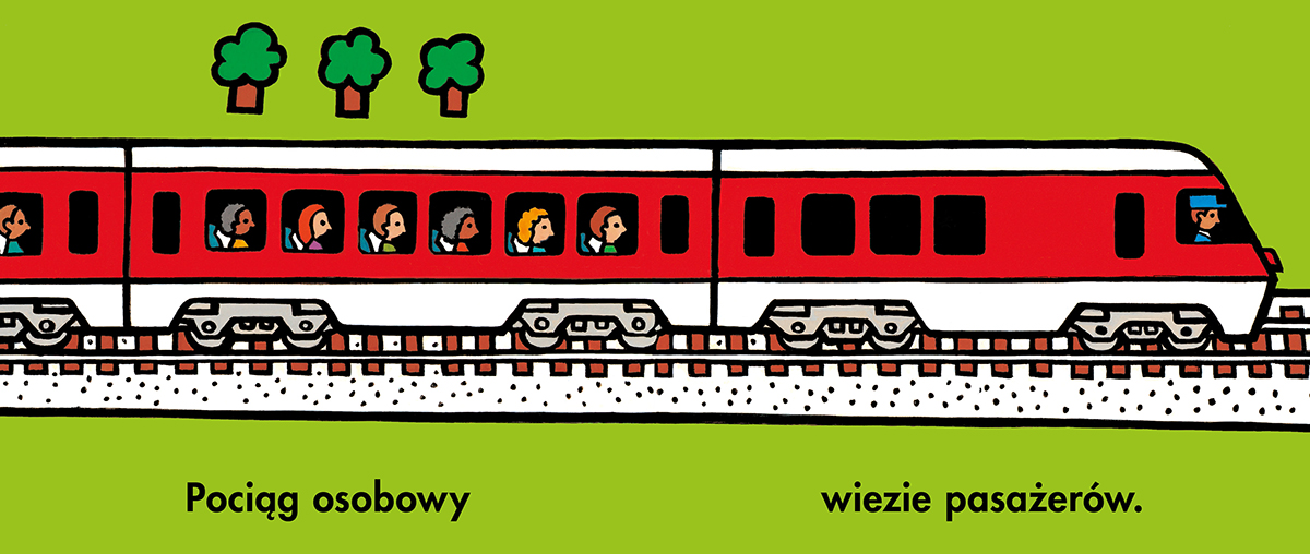 Odjazdowa kartonowa książeczka dla maluchów, które kochają pociągi. Hen, daleko, ciągną się tory. Dzień i noc jeżdżą po nich pociągi – towarowe i osobowe, parowe i elektryczne. Mijają miasta, zatrzymują się na peronach i jadą dalej – aż do stacji końcowej. Proszę wsiadać, drzwi zamykać!