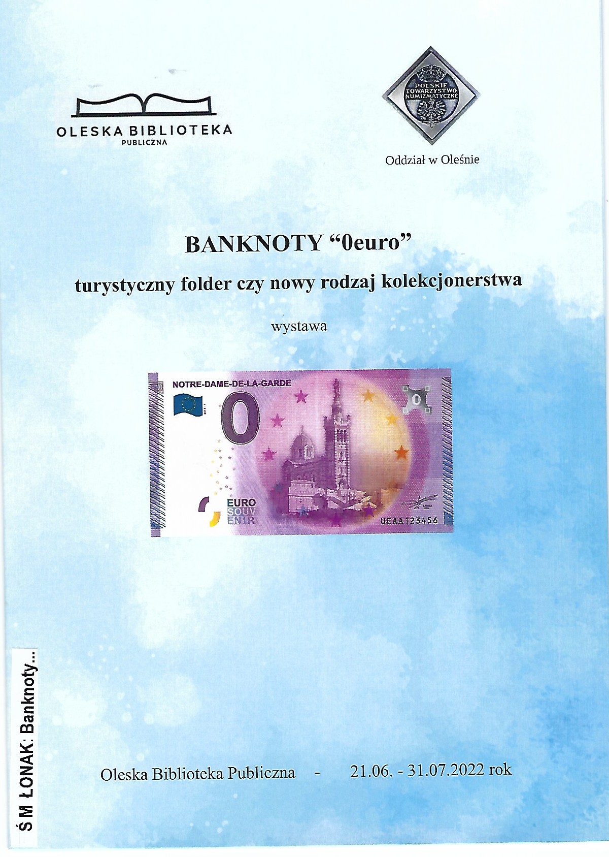 Organizatorzy wystawy: Oleska Biblioteka Publiczna, Oleski Oddział Polskiego Towarzystwa Numizmatycznego. Zespół banknotów "0euro" udostępnił Zarząd Główny Polskiego Towarzystwa Numizmatycznego w Warszawie.