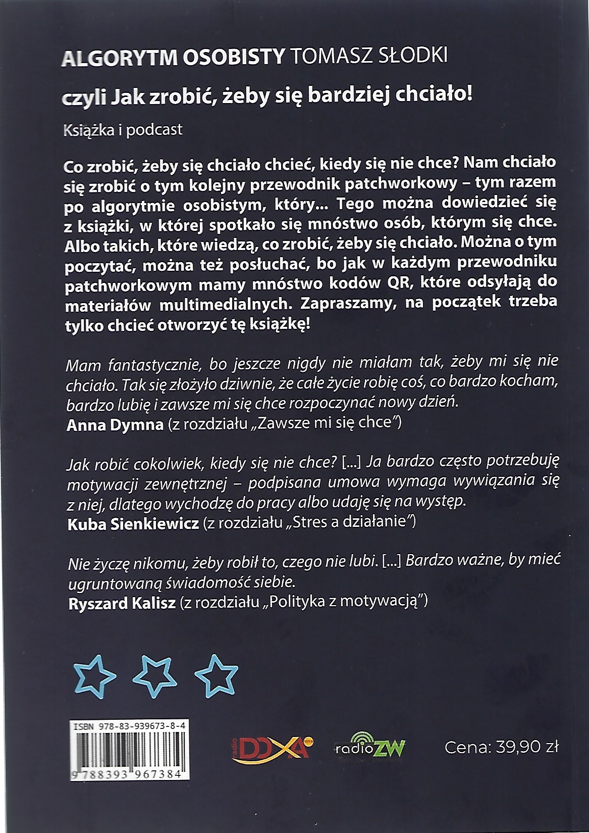 Książka o tym, jak znaleźć w sobie motywację, by podołać codziennym wyzwaniom. Swoimi doświadczeniami dzielą się artyści i przedsiębiorcy. Wydawnictwo interaktywne - kody QR kierują do wersji radiowej wywiadów na platformie soundcloud.com.