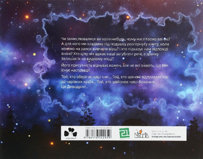 Диводрім і Піжамна Пані / Іра Бова ; ілюстрації: Дмитро Воронов, Неллі Родіонова. - Батьки маленької Ясі поїхали у справах. Дівчинка не хоче лягати спати, бо дуже за ними сумує. Щоб онука заснула, дідусь пригадує легенду зі свого дитинства про чарівника Диводріма.