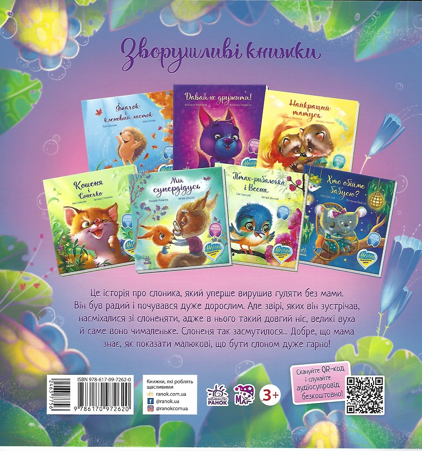 Таке велике слоненя / написала Ірина Сонечко ; намалювала Катерина Разінькова. - Це історія про слоника, який уперше вирушив гуляти без мами.