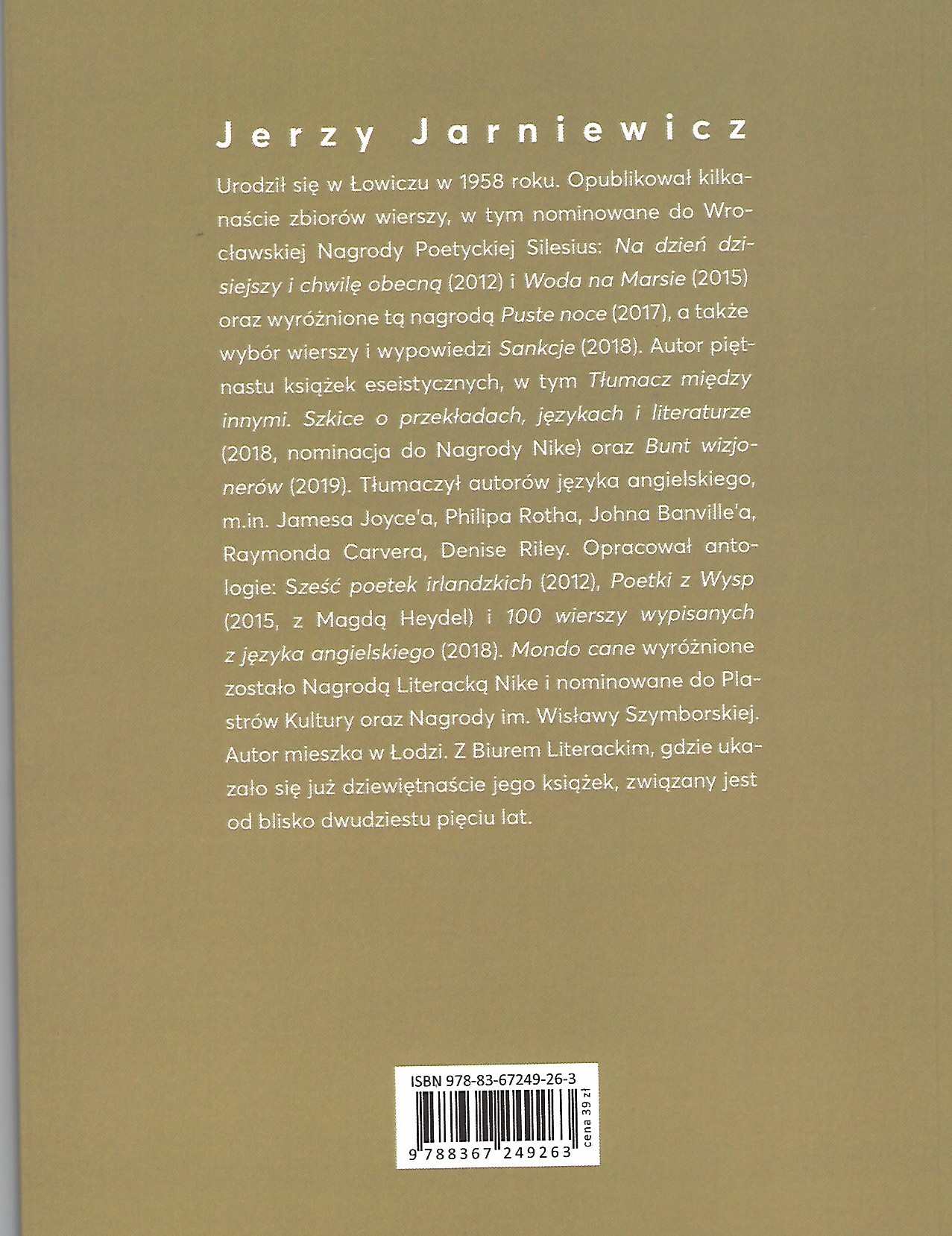 Mondo cane / Jerzy Jarniewicz. - Kołobrzeg : Biuro Literackie, 2022. - 53, [7] stron ; 22 cm.