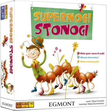 „Supernogi stonogi XXXL” to wielkoformatowa wersja bestsellerowej gry dla dzieci „Supernogi stonogi”. Zawiera wielkoformatowe elementy znane z podstawowej gry oraz 4 rozszerzenia urozmaicające rozgrywkę. 2 dodatkowe stonogi umożliwiają grę w 5–6 osób. Wykonaj sekretne zadanie i dołóż do swojej stonogi fikuśny ogonek z dodatkowymi butami. Bosa stopa pozwoli ci wykonać dodatkowy rzut kostkami! Złoty but da ci przewagę nad innymi graczami. Ale nie tak łatwo go zdobyć…