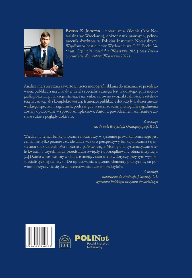 Autor jest doktorem nauk prawnych. Notariusz w Oleśnie, członek Polskiego Instytutu Notarialnego.