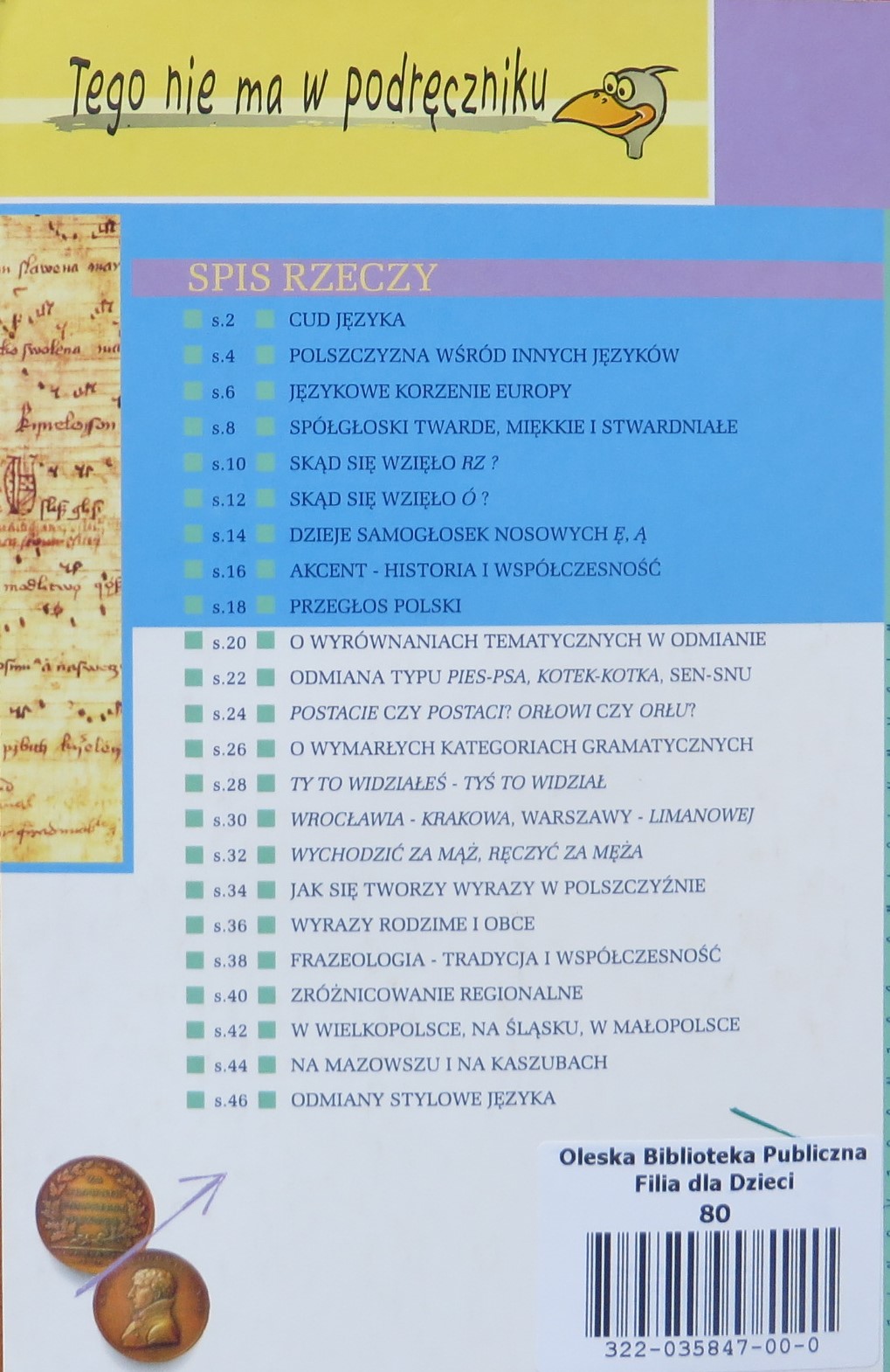 ABC polszczyzny / Jan Miodek. - Wydanie I broszurowe. - Wrocław : Wydawnictwo Dolnośląskie, 2002. - 48 stron : fotografie, faksymila, ilustracje, 1 mapa ; 24 cm.