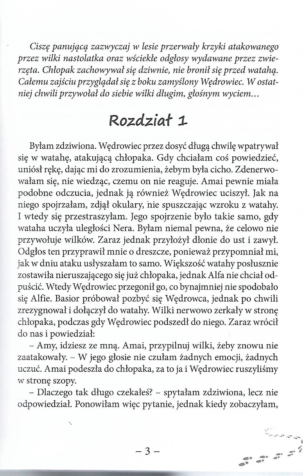 Ciszę panująca zazwyczaj w lesie przerywały krzyki atakowanego przez wilki nastolatka oraz wściekłe odgłosy wydawane przez zwierzęta. Chłopak zachowywał się dziwnie, nie bronił się przed watahą. Całemu zajściu przyglądał się z boku zamyślony Węrowiec. W ostatniej chwili przywołał do siebie wilki długim, głośnym wyciem... (Fragment).