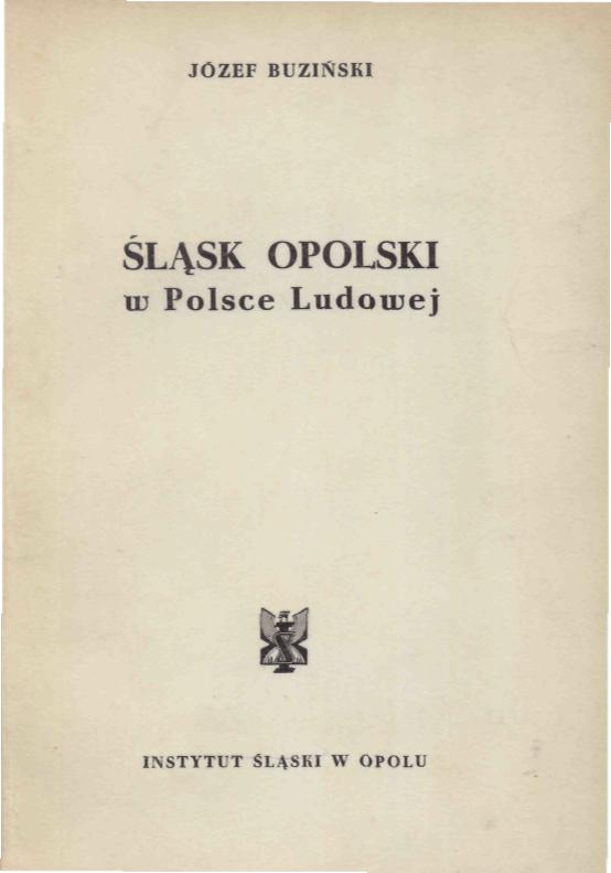 Śląsk Opolski w Polsce Ludowej / Józef Buziński ; Instytut Śląski w Opolu. - Wydanie II poszerzone i uaktualnione. - Opole : Instytyt Śląski, 1965. - 66, [2] strony, [6] stron tablic : fotografie, ilustracje ; 21 cm.