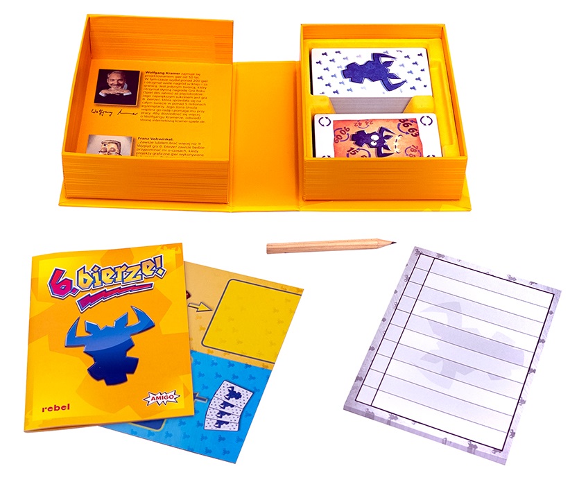 Czym jest 6. bierze? To niezwykle prosta, a jednocześnie maksymalnie wciągająca gra karciana, w której staramy się pozbyć z ręki wszystkich byczych głów. Na samym początku otrzymujemy po 10 kart, które następnie zagrywamy w 1 z 4 rzędów. Pamiętaj jednak, że nazwa gry nie jest przypadkowa: ten, kto dołoży 6. kartę do rzędu, musi go zebrać, a każdy byk na zebranej karcie oznacza niechciane punkty karne! (Nota wydawcy).