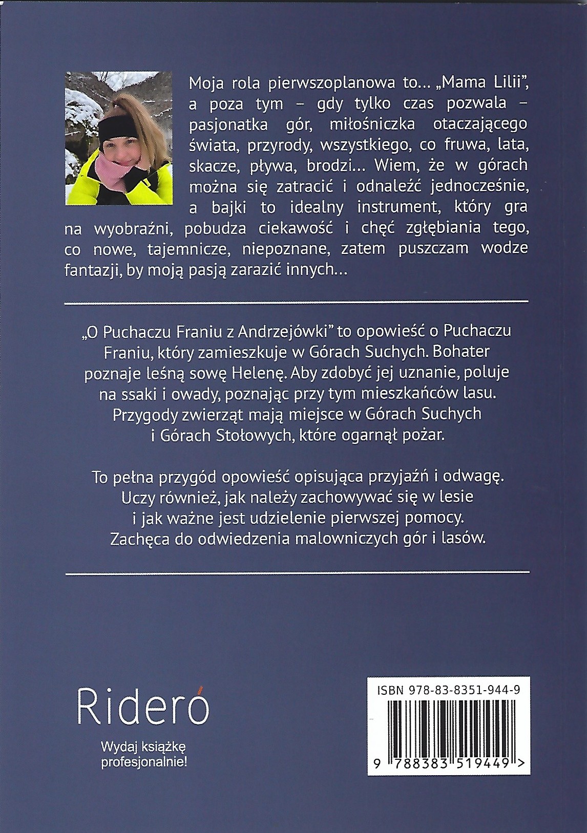 Jest to opowieść o Puchaczu Franiu, który zamieszkuje w Górach Suchych. Bohater poznaje leśną sowę Helenę. Aby zdobyć jej uznanie, poluje na ssaki i owady, poznając przy tym mieszkańców lasu. Przygody zwierząt mają miejsce w Górach Suchych i Górach Stołowych, które ogarnął pożar. To pełna przygód opowieść opisująca przyjaźń i odwagę. Uczy również, jak należy zachowywać się w lesie i jak ważne jest udzielenie pierwszej pomocy. Zachęca do odwiedzenia malowniczych gór i lasów. (Z okładki).