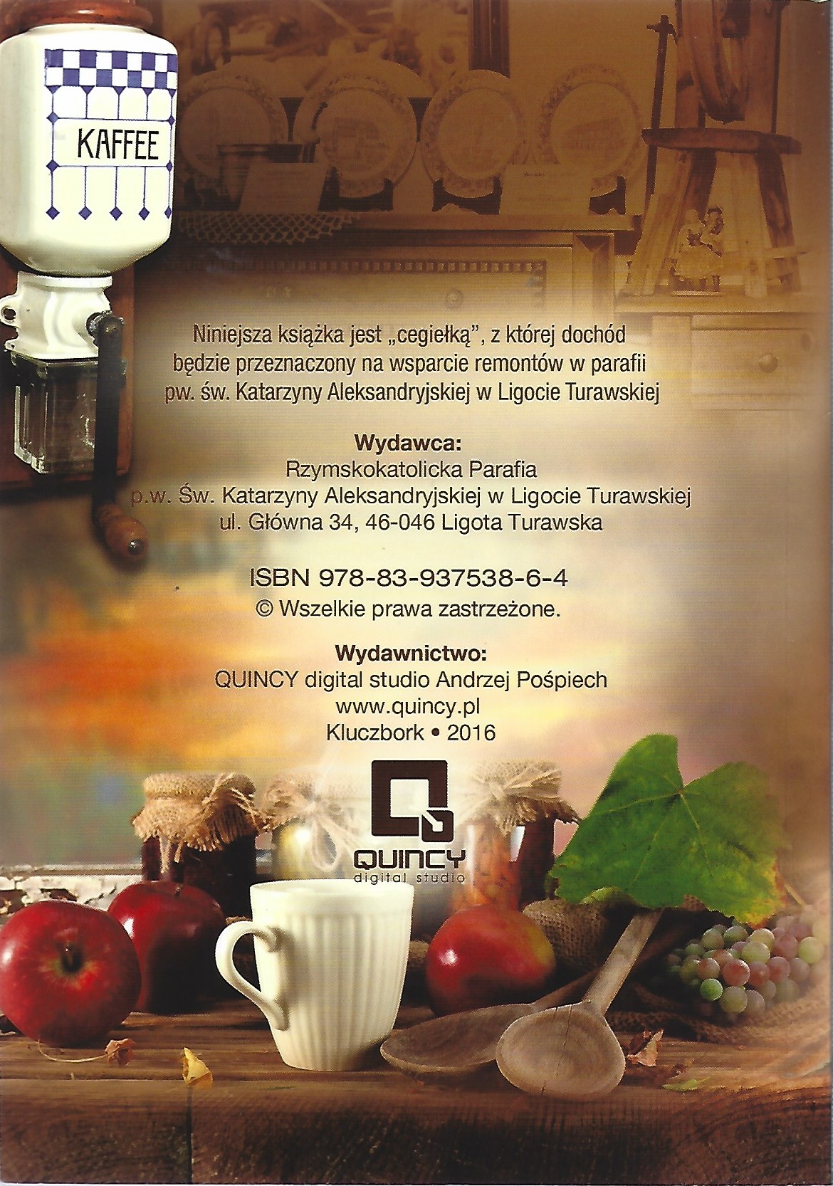 Na stronie redakcyjnej i okładce: Niniejsza książka jest "cegiełką", z której dochód będzie przeznaczony na wsparcie remontów w parafii pw. św. Katarzyny Aleksandryjskiej w Ligocie Turawskiej.