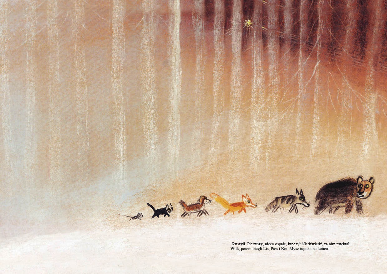 To była niezwykła noc. Taka, w której wydarzają się cudowne rzeczy. W małej wiosce Betlejem pasterze usłyszeli radosną nowinę: «Narodził się nowy Król. Potężny władca!». Malutka Mysz postanawia powitać nowego Króla. Wyrusza w podróż, a drogę oświetla jej niezwykła gwiazda”. opowieść wigilijna w malarskiej interpretacji Józefa Wilkonia. Opowieść, w której zwierzęta mówią ludzkim głosem, na niebie lśni gwiazda, a mroźna noc skrywa tajemnicę. (Nota wydawcy).