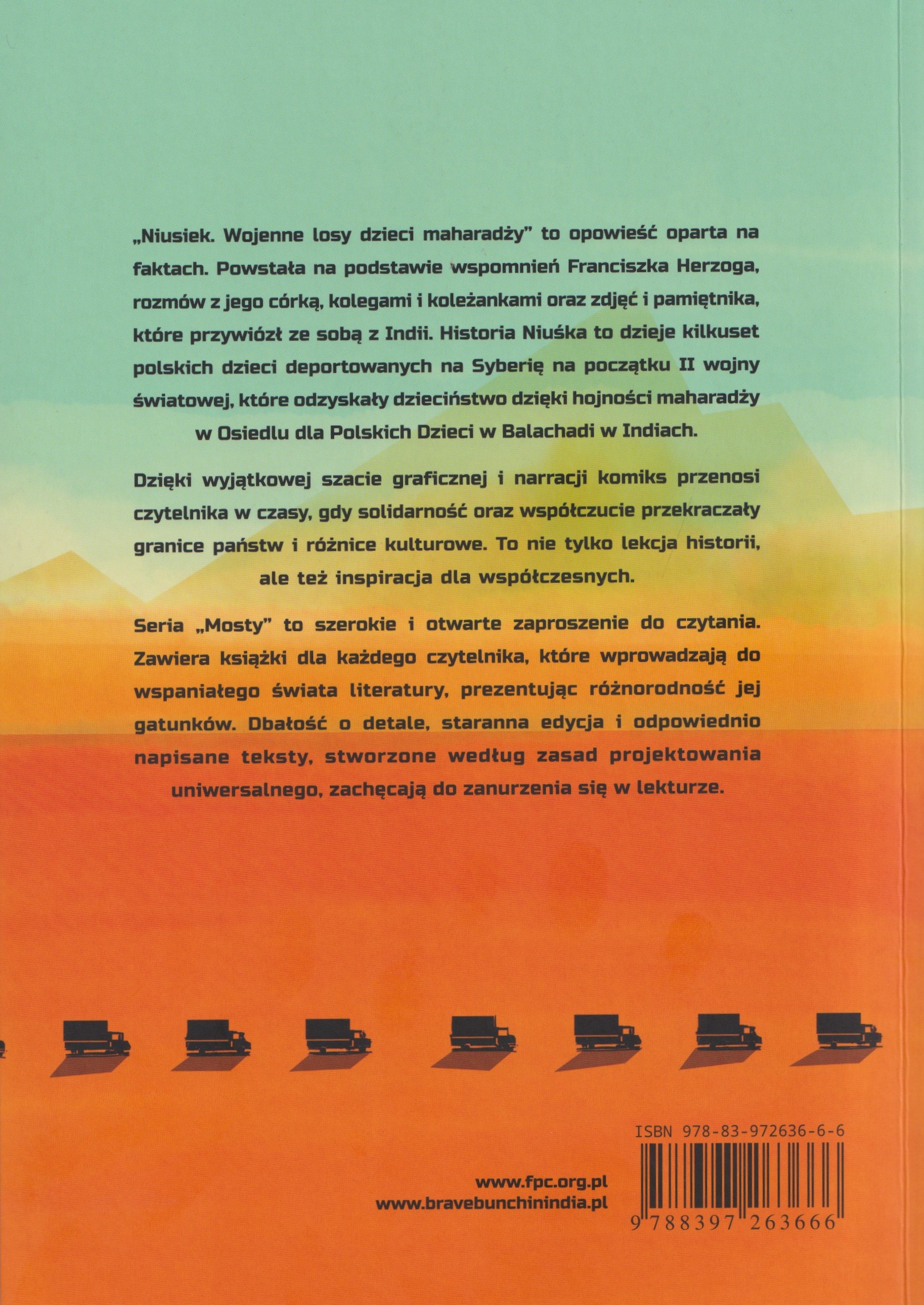Poruszający komiks opowiadający prawdziwą historię polskich dzieci, które podczas II wojny światowej znalazły schronienie w Indiach. (Nota wydawcy).