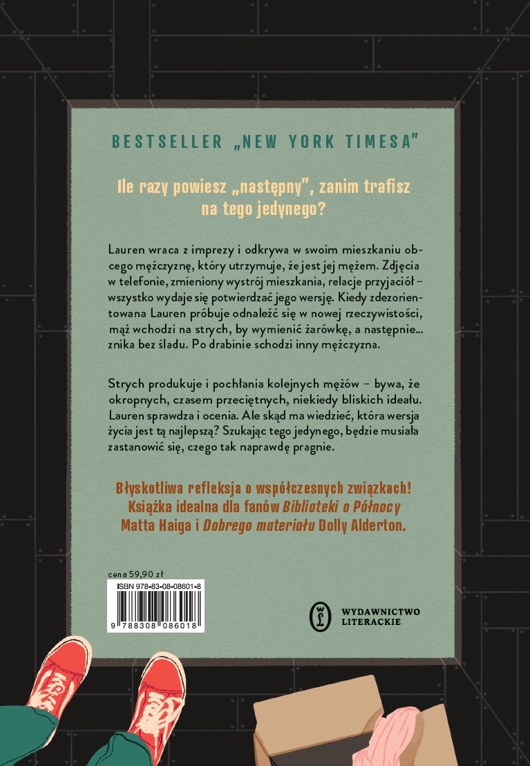 Wszechświat daje szansę na wybór dokładnie takiego męża i takiego życia, o jakich zawsze marzyłaś. Ile razy powiesz „następny”, zanim trafisz na tego jedynego? Lauren wraca do domu i odkrywa w swojej kuchni czarującego mężczyznę, który twierdzi, że… jest jej mężem. Wszystko – od zdjęć po dokumenty – zdaje się to potwierdzać. Jednak kiedy Michael znika na strychu, jego miejsce zajmuje kolejny mężczyzna, a wraz z nim nowa wersja życia kobiety. "Mężowie" to błyskotliwa, wymykająca się schematom opowieść o poszukiwaniu idealnego życia i o wyborach, które – choć nieskończone – nie przynoszą ukojenia. Holly Gramazio, pisarka i projektantka gier, z wyczuciem łączy literacką finezję z narracyjną świeżością. Jej doświadczenie w tworzeniu interaktywnych światów (m.in. gra Dicey Dungeons) znajduje odzwierciedlenie w powieści, która równie mocno bawi, co prowokuje do myślenia. (Nota wydawcy).