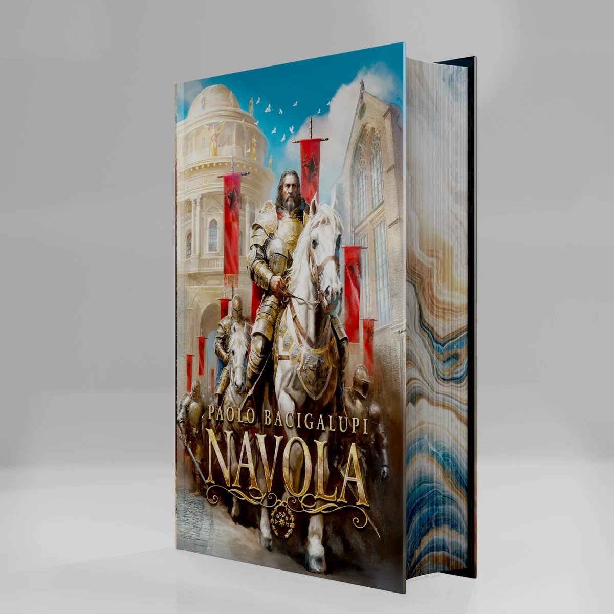 W Navoli, tętniącym życiem mieście-państwie zdominowanym przez garstkę wpływowych rodów, biznes to władza, a władza to wszystko. Przez pokolenia kupcy z rodu di Regulai pielęgnowali swoje wpływy w najdalszych zakątkach znanego świata. I choć twierdzą, że nie są politykami, to ich oszałamiające bogactwo kupowało miasta oraz obalało królestwa. Wkrótce Davico di Regulai obejmie władzę po swoim ojcu i będzie musiał zmierzyć się z intrygami i brutalną polityką innych możnych rodów. Ale za wspaniałą złotą fasadą Navoli kryją się też groźne i tajemnicze siły. Jedną z nich jest będące w posiadaniu rodu di Regulai oko smoka - potężny artefakt surowej mocy i talizman, który wydaje się wzywać młodego Davica do działania. Los młodzieńca zależy od tej starodawnej smoczej relikwii i od tego, co kryje się w sercu jego adoptowanej siostry, Celii di Balcosi, której rodzina została zniszczona przez pokrętną politykę Navoli. Paolo Bacigalupi to amerykański autor fantastyki, którego twórczość zalicza się do nurtu fantastyki ekologicznej i cyberpunka. [...] Powieścią "Navola" odkrywa nowe horyzonty, budując hipnotyzujący świat będący pomieszaniem renesansowych Włoch, "Ojca chrzestnego" i "Gry o tron". (Z okładki).