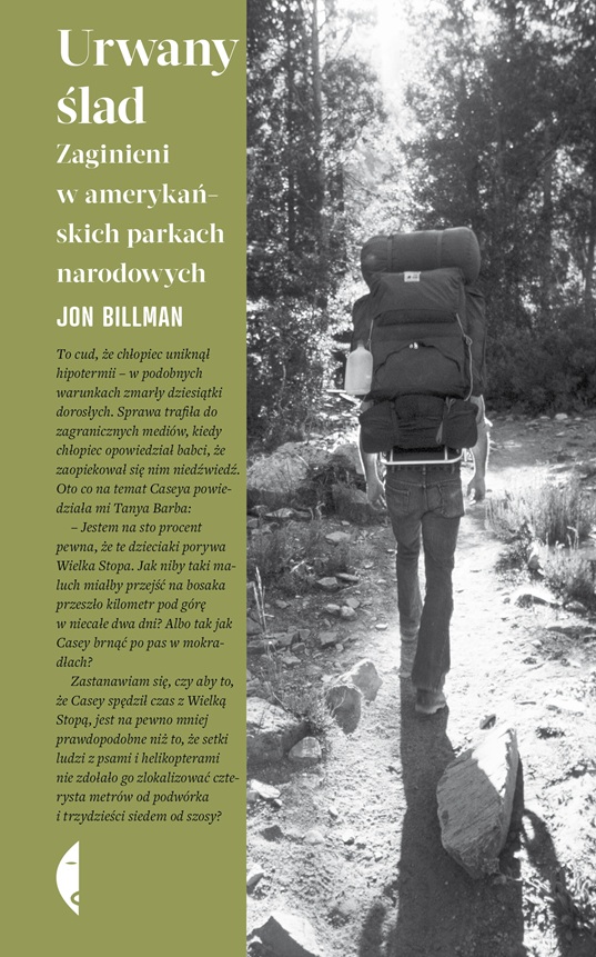 Parki narodowe w Stanach Zjednoczonych to miejsca o statusie niemal mitycznym – symbole wolności i obietnice przygody. Jednak mają też mroczniejszą stronę. Na początku kwietnia 2017 roku Jacob Gray zatrzymał rower przy jednej z dróg prowadzących przez gęste lasy Parku Narodowego Olympic w stanie Waszyngton – i zniknął. Jakby rozpłynął się we mgle. Żadnych świadków, żadnego tropu. Jego historia nie jest wyjątkiem: co roku w amerykańskiej głuszy giną setki, może tysiące ludzi. Ile dokładnie? Nikt nie wie. W poszukiwaniach pomagają helikoptery, psy tropiące i wolontariusze, ale równie często szczęśliwy traf. Mimo to wiele spraw nigdy nie znajduje rozwiązania. Wtedy pojawiają się teorie spiskowe: od porwania przez Wielką Stopę przez przejście do innego wymiaru do interwencji UFO. Jon Billman tygodniami przemierzał bezdroża razem z rodziną Jacoba Graya, przede wszystkim z jego ojcem – ekscentrycznym surferem z Santa Cruz, który nie potrafi przestać szukać syna. Z tej podróży powstała opowieść o nadziei i rozpaczy oraz o rodzicielstwie, które nigdy się nie poddaje. (Z okładki).