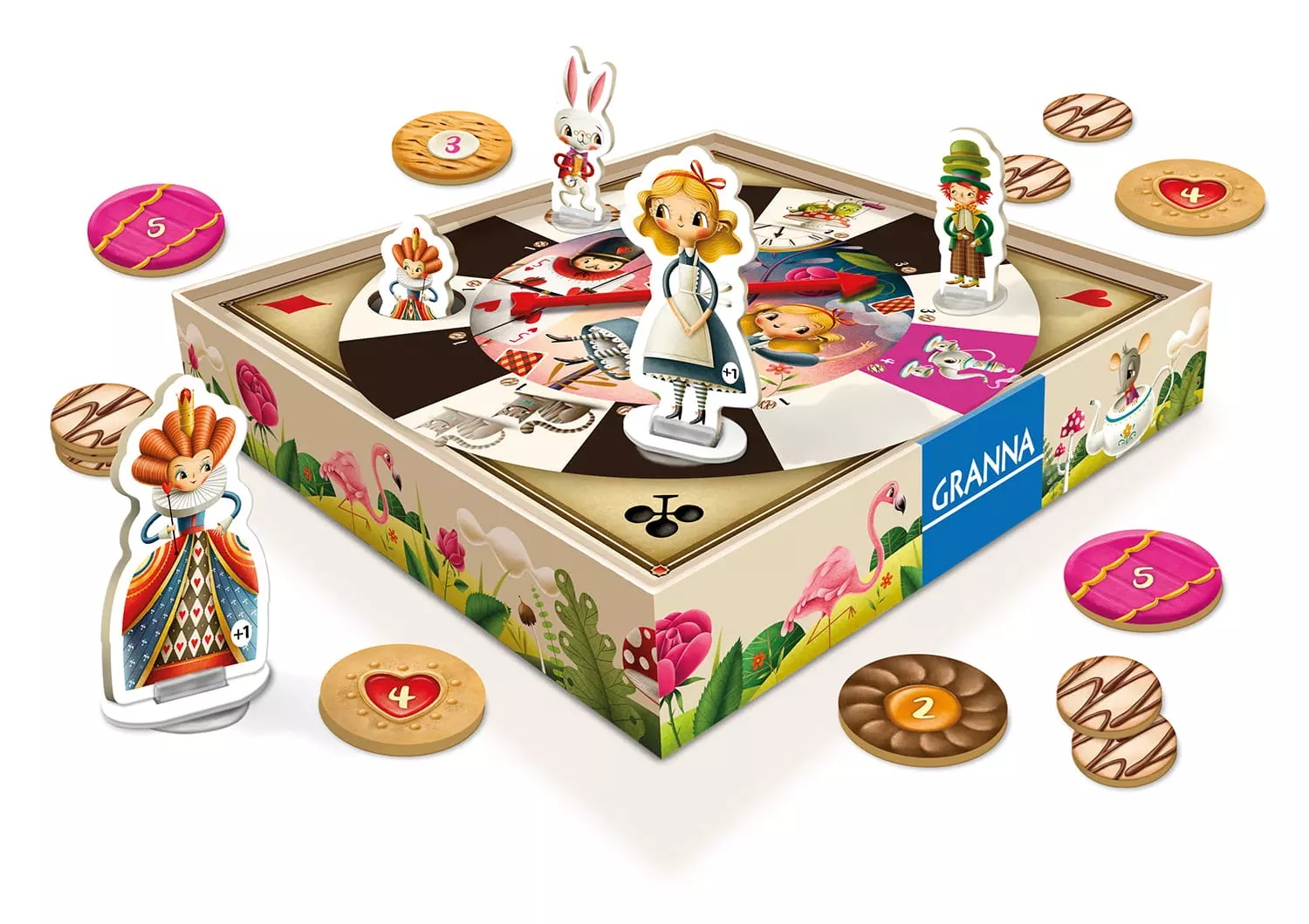 Alicja w Krainie Czarów / Martino Chiacchiera, Remo Conzadori ; [ilustracje] Maciej Szymanowicz ; na podstawie "Alicji w Krainie Czarów" Lewisa Carrola, w przekładzie Antoniego Marianowicza. - Warszawa : Granna, copyright 2024. - 1 gra (wiele elementów) : plastik, tektura, kolorowa ; w pudełku 19x19x4 cm + instrukcja (16 stron).