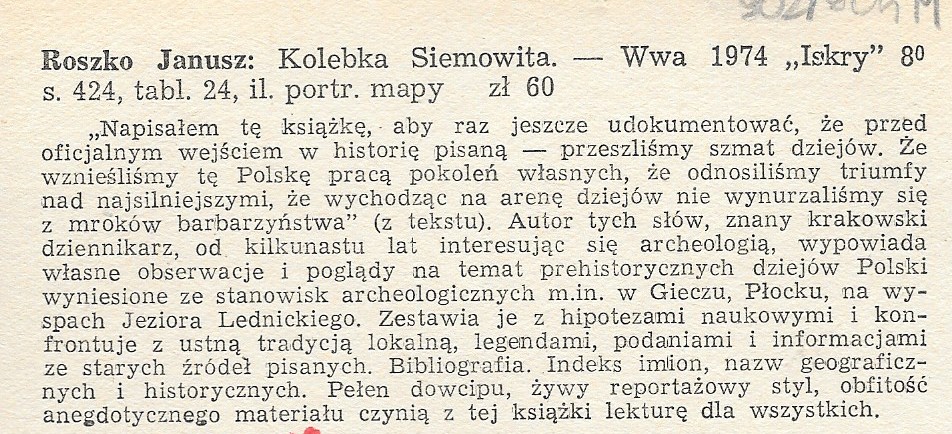 Kolebka Siemowita / Janusz Roszko. - Warszawa : Iskry, 1974. - 424, [4] s., [24] s. tabl. : il., mapy, portr. ; 25 cm.
