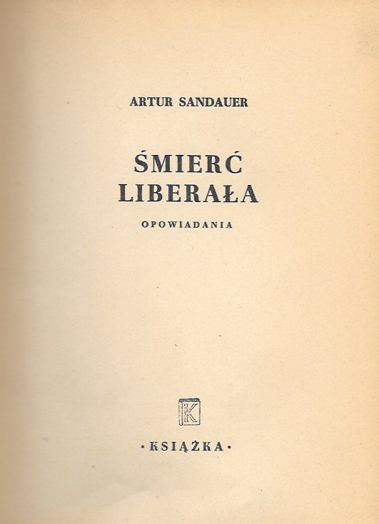 Śmierć liberała : opowiadania / Artur Sandauer. - Łódź : Książka, dr. 1947 (Łódź : Zakłady Graficzne "Książka"). - 185, [1] s. ; 21 cm.