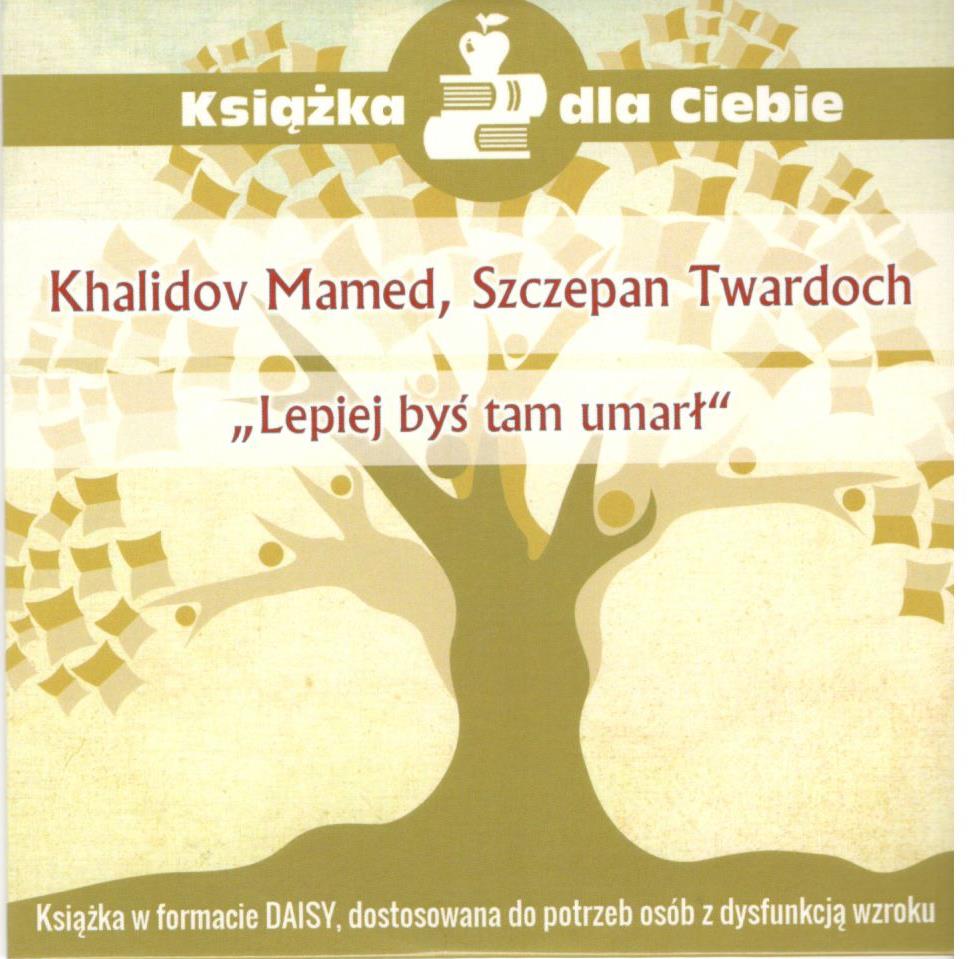 Lepiej byś tam umarł / Mamed Khalidov, Szczepan Twardoch. - Warszawa : Fundacja Edukacji Nowoczesnej, 2017. - 1 dysk optyczny [CD-ROM, Daisy] : zapis cyfrowy, stereo. ; 12 cm.