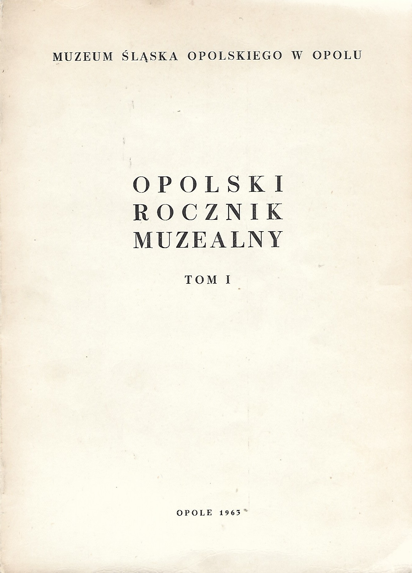 Opolski Rocznik Muzealny. T. 1. / [Ignacy Kuźniewski redaktor]. - Opole : Muzeum Śląska Opolskiego, 1963. - 253, [2] strony : fotografie, ilustracje ; 24 cm.