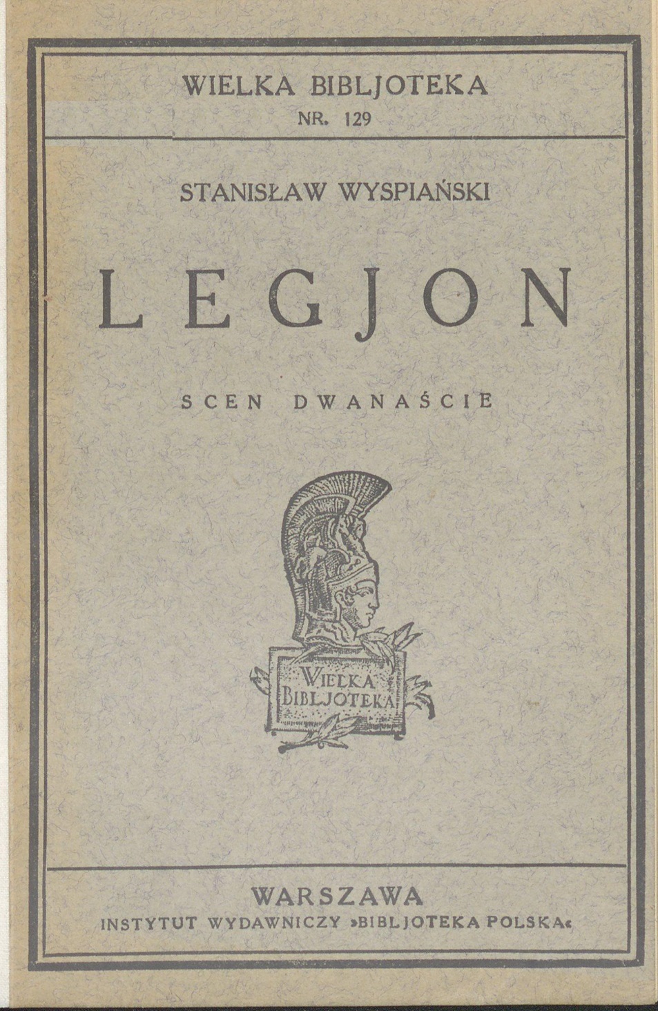 Legjon : scen dwanaście / Stanisław Wyspiański. - Warszawa : Instytut Wydawniczy "Bibljoteka Polska", [1926] (Bydgoszcz: Zakłady Graficzne Instytutu Wydawniczego "Bibljoteka Polska"). - 94 strony ; 20 cm.