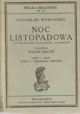 Noc listopadowa / Stanisław Wyspiański. - Warszawa : Instytut Wydawniczy "Bibljoteka Polska", [1924] (Bydgoszcz : Zakłady Graficzne Instytutu Wydawniczego "Bibljoteka Polska"). - 131 stron ; 16 cm.