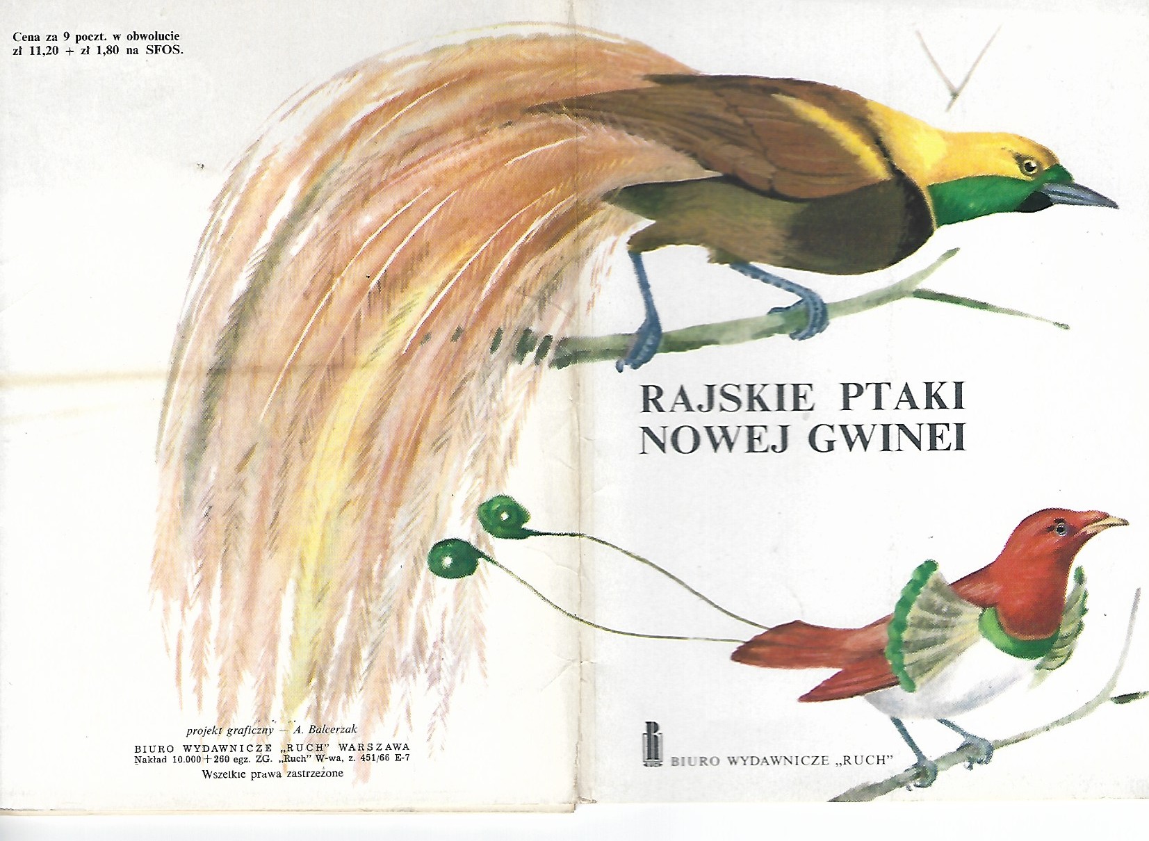 Rajskie ptaki Nowej Gwinei / projekt graficzny Alojzy Balcerzak. - Warszawa : Biuro Wydawnicze "Ruch", [1966]. - 1 teka (9 pocztówek) : kolor ; 15x11 cm.