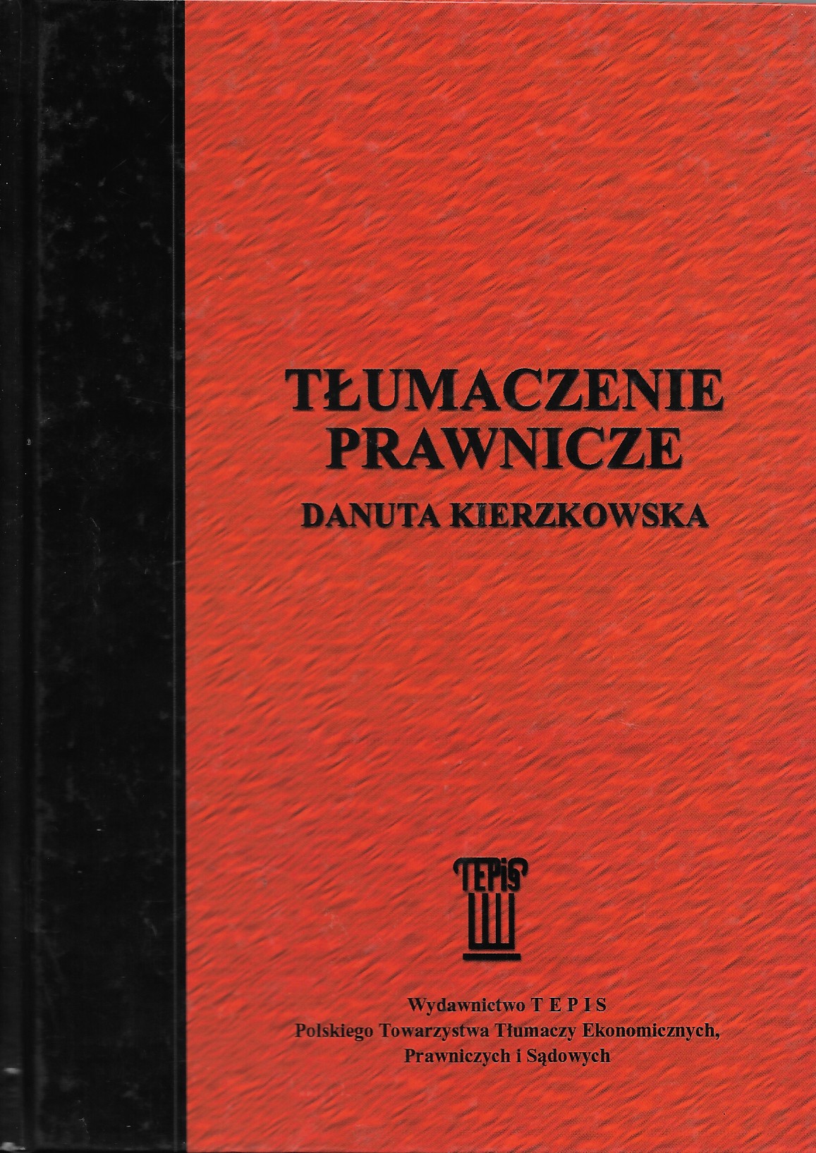 Tłumaczenie prawnicze / Danuta Kierzkowska. - Warszawa : Tepis, 2002. - 200 stron : ilustracje ; 21 cm.